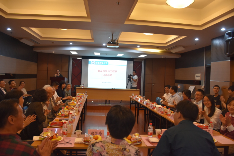 2017年5月26日下午,为庆祝校庆65周年,生物工程学院在实验十八楼315室举办了食品科学与工程系口述历史交流会。我校食品工程专业的奠基人于接芸、徐玉佩、蔡云升、张亚雯等退休老教师出席会议,周浩、冯屏、葛轶群、葛宇、郑芸岭、王国英、沈雨亮、金义光等专业创立初期的教师和学生代表应邀出席活动。杰出校友荷兰瓦格宁根大学教授朱阳专门发来回忆历史的贺信。生物工程学院院长庄英萍、党委书记陆兵、副院长赵黎明、学工委主任吴蓉等院领导以及周家春、谢静莉、周英等历现任食品系领导,在职教师和部分学生代表参加了此次活动。