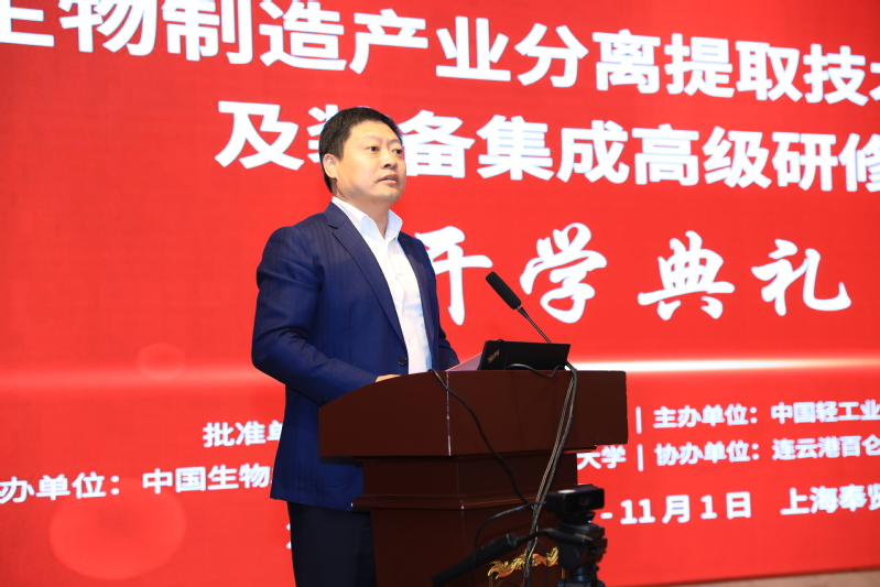 10月29日,经国家人力资源和社会保障部批准、由中国轻工业联合会主办、中国生物发酵产业协会和华东理工大学承办的“生物制造产业分离提取技术、工艺及装备集成高级研修班”开学典礼举行。来自全国生物医药与生物发酵产业的59家企业81位企业家、高级技术专家参加本届高研班的学习。中国轻工业联合会副秘书长、中国生物发酵产业协会理事长于学军,副理事长冯志合,我校校长轩福贞等出席开学典礼。