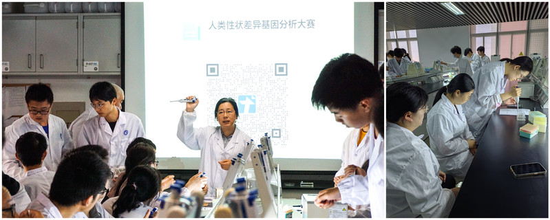 本次比赛分初赛、复赛、决赛三个环节。比赛吸引了来自生物工程学院、药学院、商学院、社会与公共管理学院、信息科学与工程学院等12个学院500余名学生参加,其中150名学生通过遴选进入复赛。5月19日,在同学们的翘首期盼中复赛在奉贤校区实验七楼的实验教学示范中心——发酵工程实验教学示范中心举行,复赛的主题是PCR-RFLP法鉴定自己的抑癌基因--p53基因的多态性。复赛正式实验前,专业老师讲解了基本实验原理以及实验仪器的操作方法,很多文科学院的同学第一次操作基因分析实验的仪器,大家都兴趣盎然,认真听讲并做笔记。