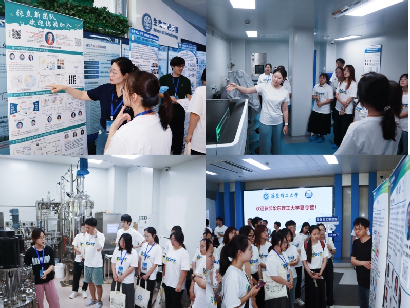 学术讲座结束后,营员们依次走进生物反应器工程全国重点实验室、国家生化工程技术研究中心、光遗传学与合成生物学交叉研究中心,近距离观摩高通量筛选平台、智能发酵系统等大型科研装置,并与现场师生就技术细节展开交流。通过沉浸式体验,大家直观感受到生物工程在创新药物、绿色制造等方向的广阔前景,对相关科学原理和工艺路径的认知亦由抽象转为具象。随后,全体营员移步实验十八楼一楼,与各科研团队教师面对面交流,会场气氛热烈,提问接连不断,在思维碰撞与观点交锋中,营员们对前沿动态的理解更为深入,对科研探索的无穷魅力亦心生向往。